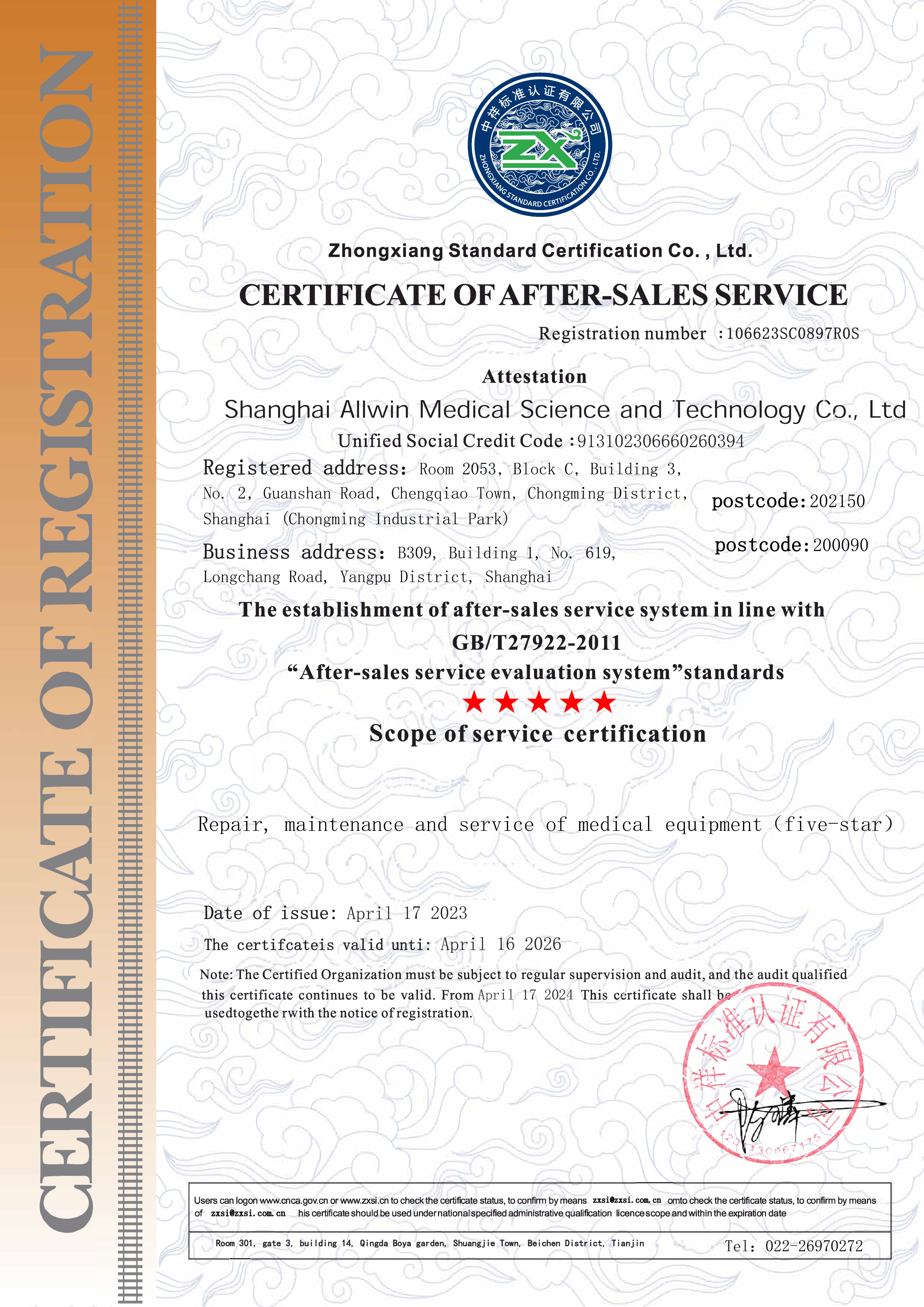售后服务认证证书